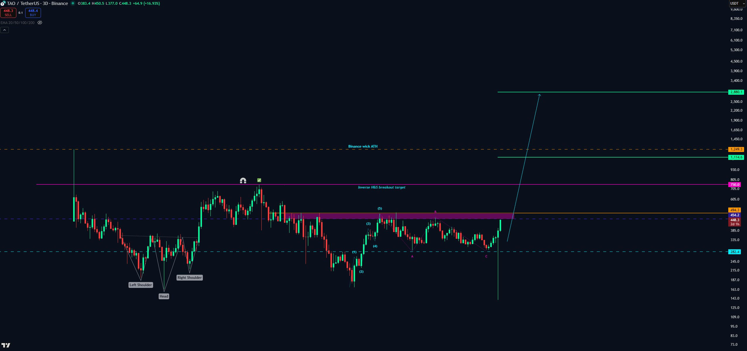 Popular crypto trader DonaXbτ highlighted that Bittensor TAO is “getting close to the most important resistance level,” a zone that triggered multiple rejections in prior rallies. A clean breakout above $500 could mark the official transition into a bull market, confirming what chartists call wave 3 of its impulsive structure.