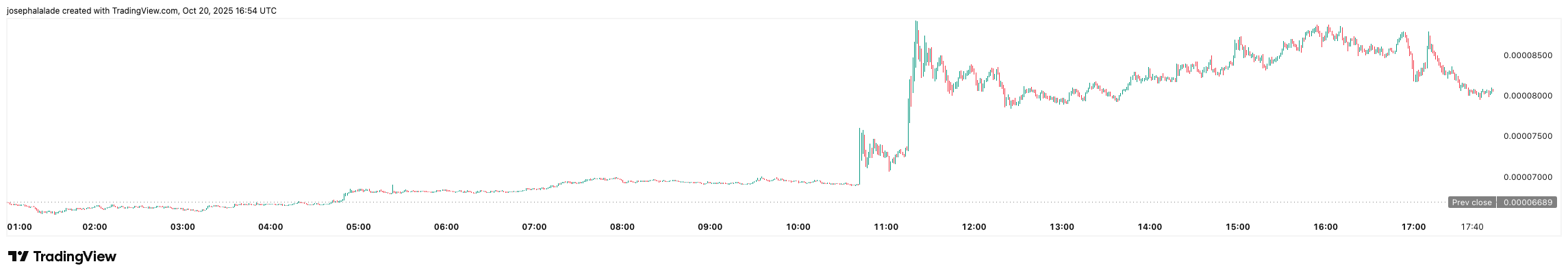 Immediate resistance now sits between $0.000085–$0.000090, where previous rallies failed to sustain. A decisive close above $0.000090 could open the door to $0.00010, a psychological milestone that hasn’t been seen since early October.