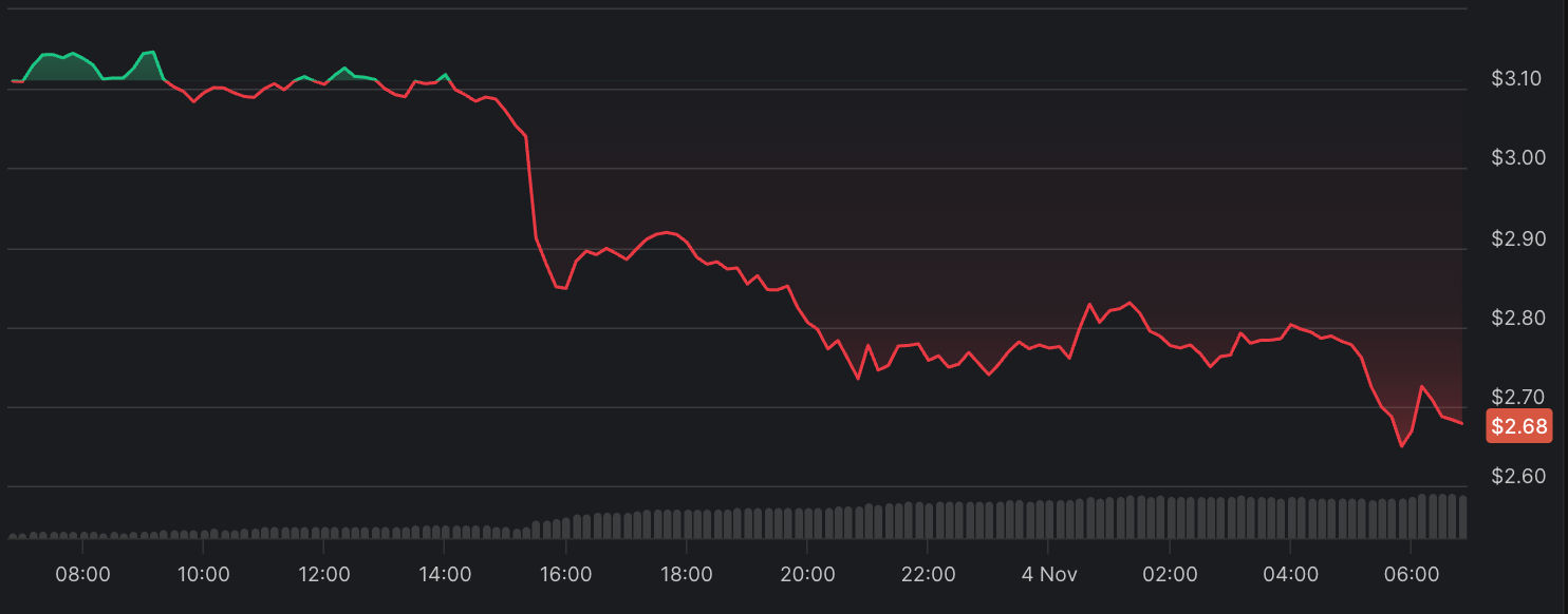 Still, the market didn’t seem to care. As of early Tuesday, the Aptos price crashed 14% in 24 hours, dropping to $2.64, its lowest point in years.