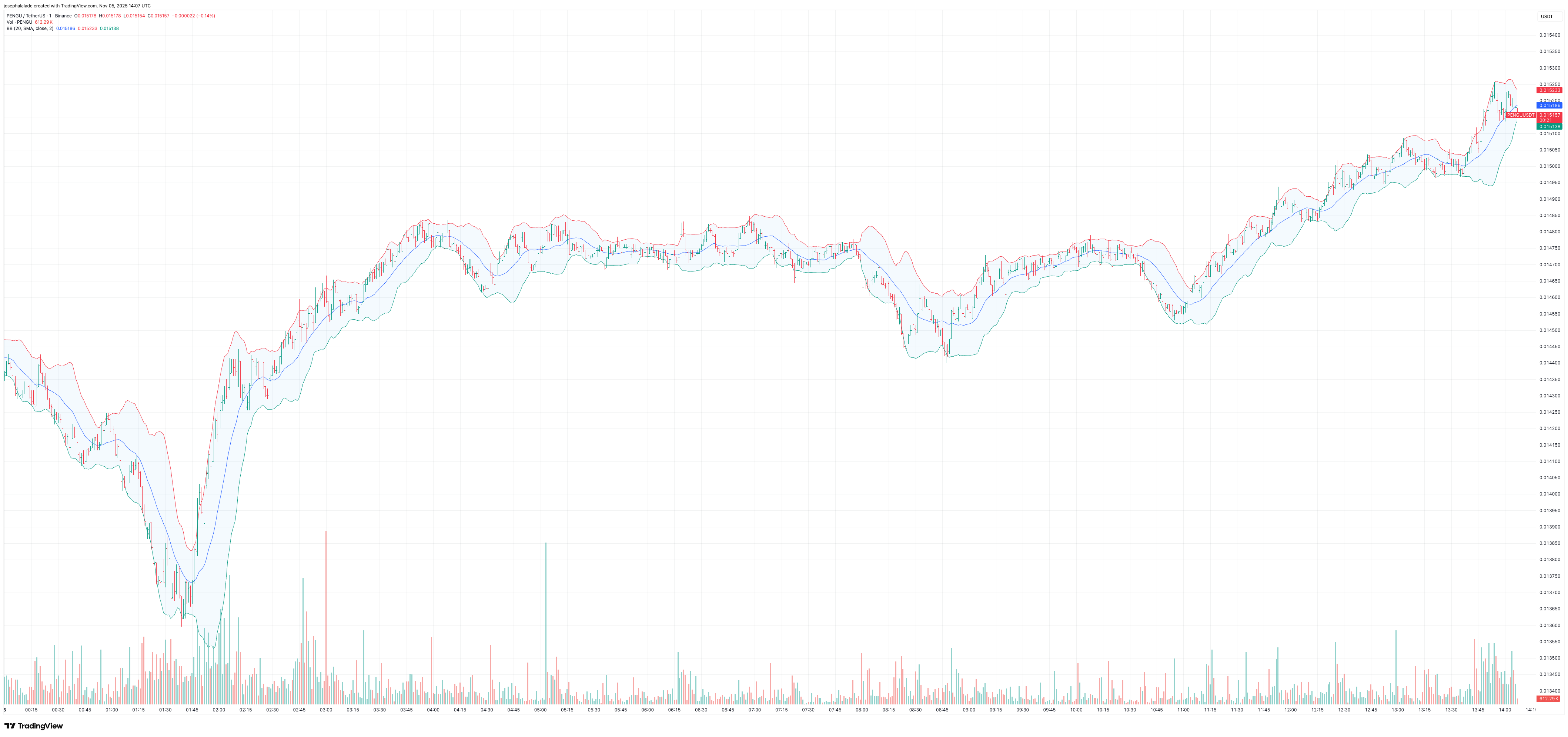 At present, the Pudgy Penguins Coin sits at a crucial inflection zone near $0.015. A clean move above $0.0165 could open the door to a short-term bounce toward $0.018–$0.020, but losing this support base might send it back toward the $0.013 range seen earlier in the week.