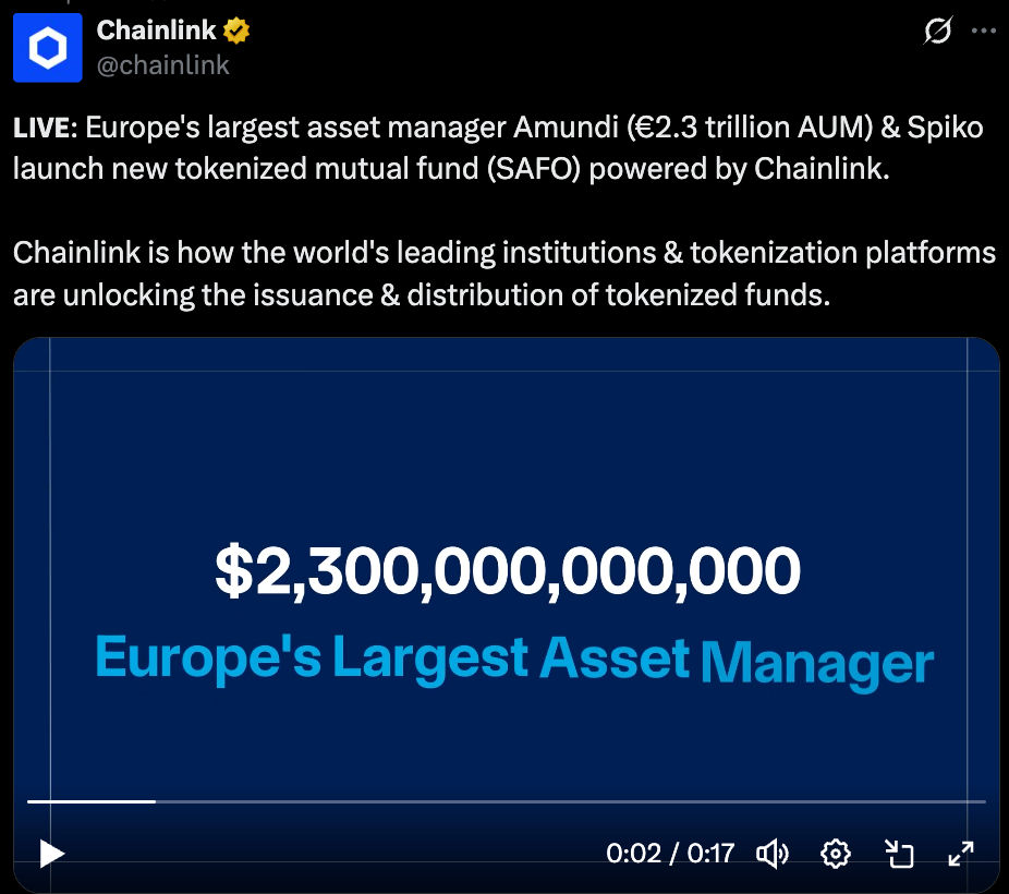 Amundi & Spiko launch tokenized mutual fund (SAFO) powered by Chainlink | @Chainlink on X
