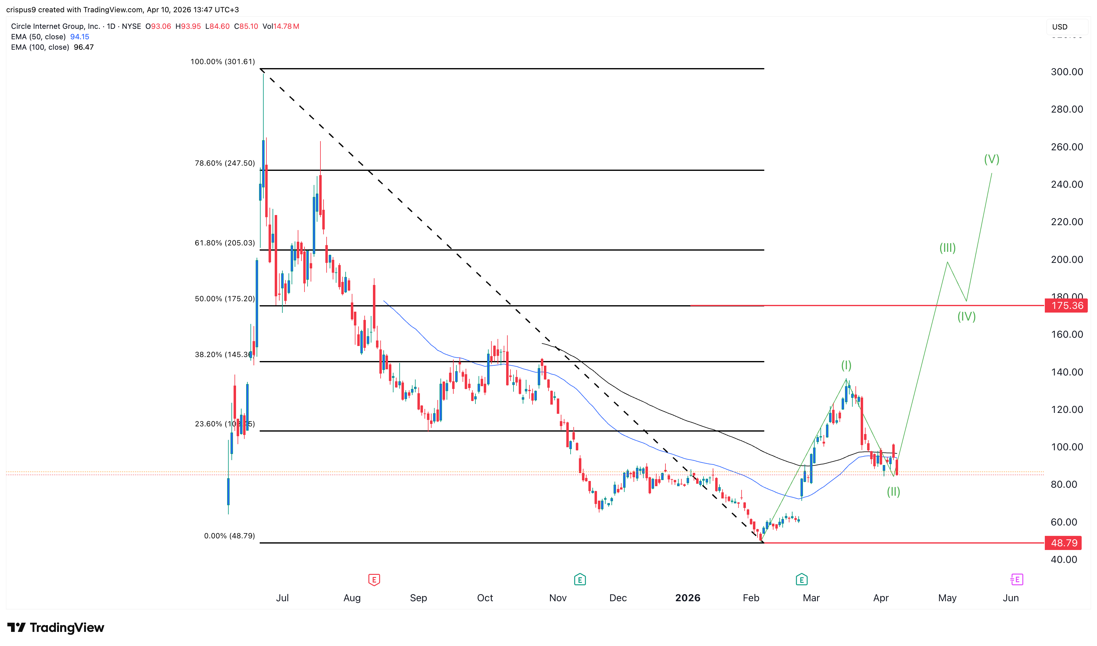 Circle stock price has lost momentum in the past two weeks as it dropped from a high of $134 on March 16 to the current $85. The retreat continued on Thursday after an analyst at Compass Point downgraded it and placed a target of $77. Still, CRCL is in the process of forming an Elliot Wave, pointing to an eventual rebound.