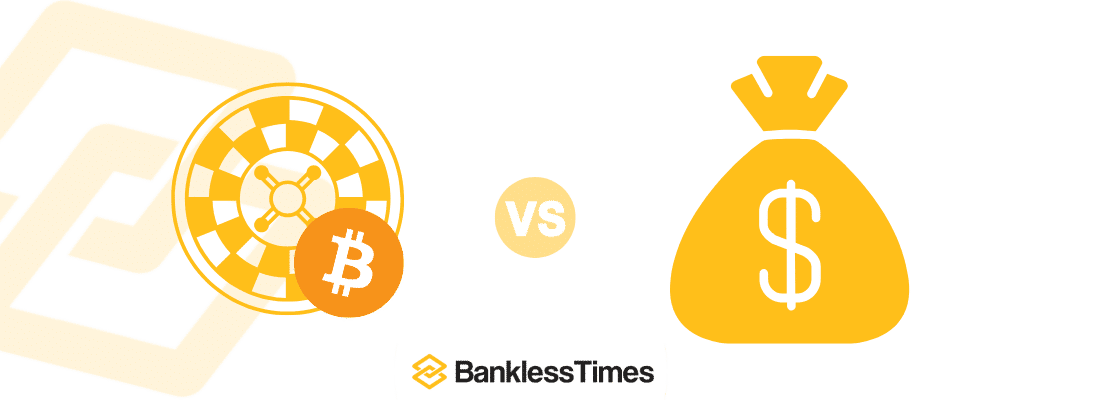 The most straightforward way to explain the difference is that traditional roulette is a game where you play using fiat currencies, such as US dollars, Euros, or Pounds, whereas crypto roulette accepts bets using digital coins, such as Bitcoin, Ethereum, and Litecoin.
