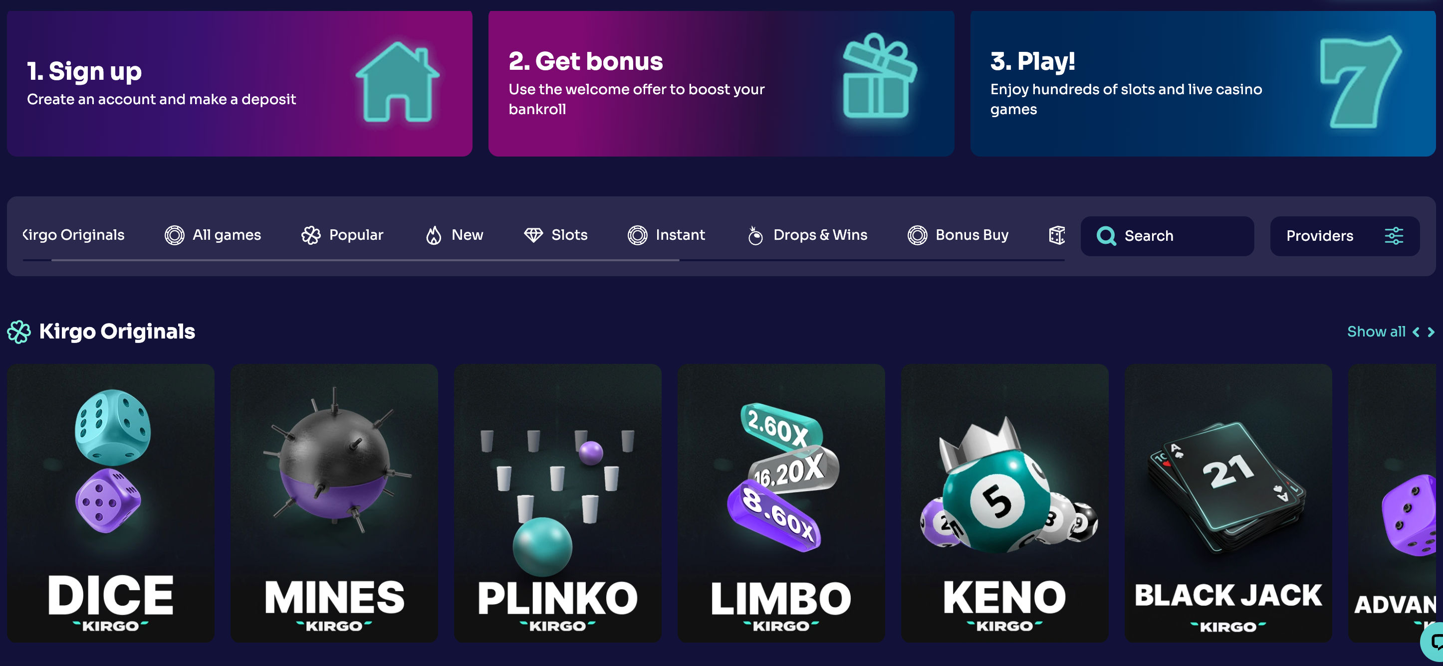 Kirgo is a crypto-friendly online casino offering thousands of games, fast blockchain transactions, and competitive bonuses for new players.