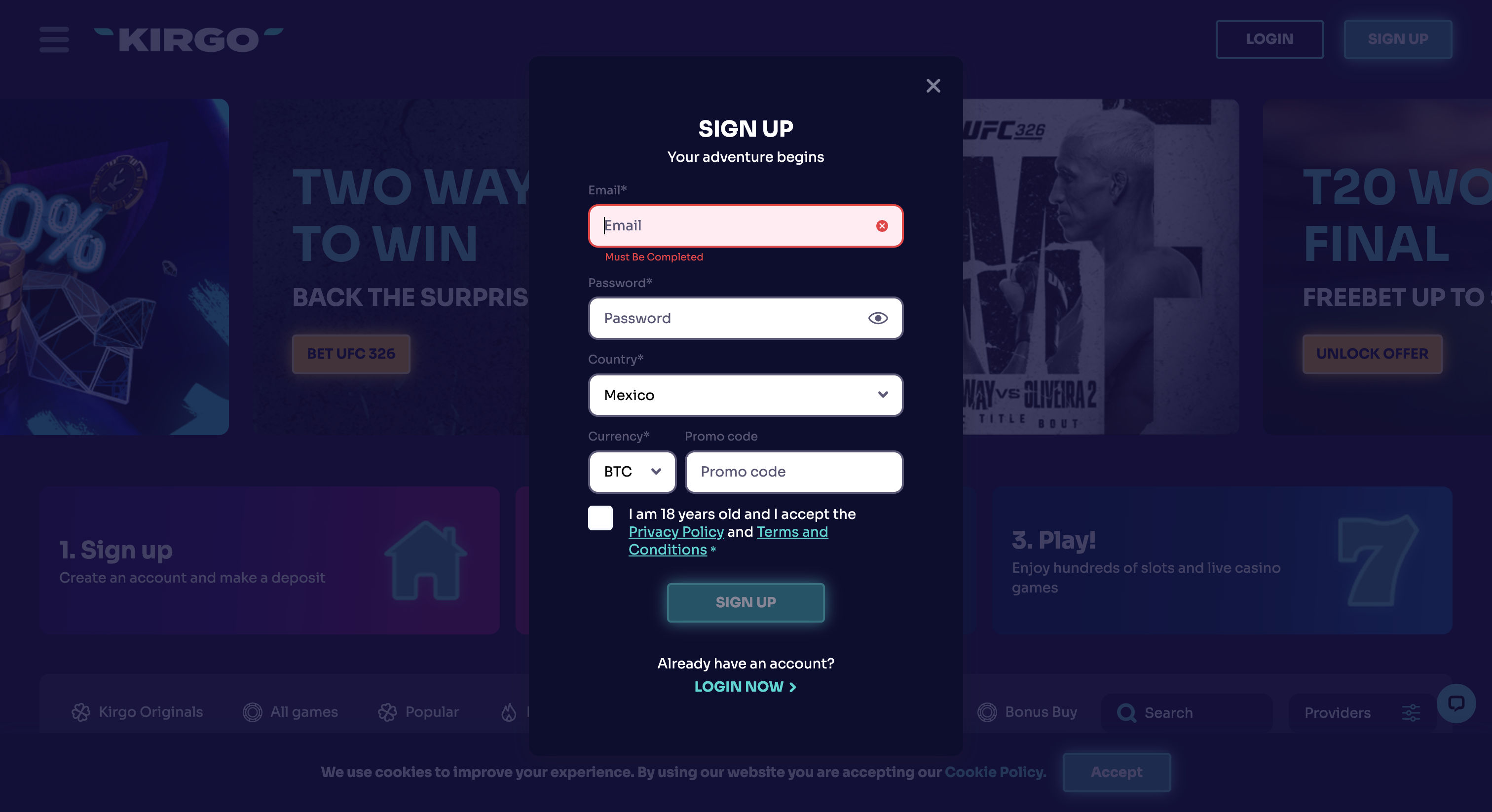 Getting started at Kirgo is a straightforward process designed to accommodate both seasoned gamblers and newcomers to the crypto space. The signup process involves just a few simple steps, making it easy for players to join and start enjoying their favorite games.